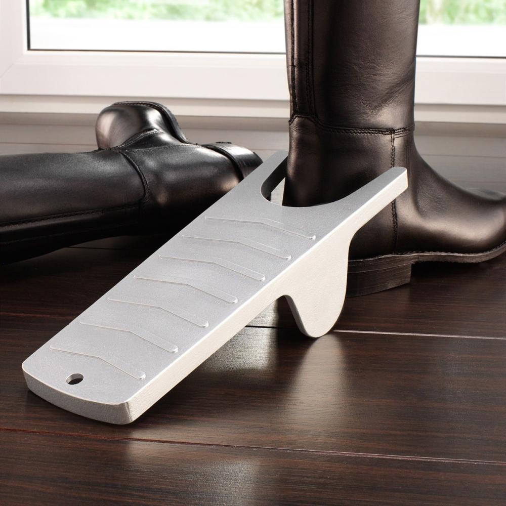 Shýbání se a bolesti zad patří minulosti. Takhle snadno a rychle jste si vysoké boty ještě nikdy nevyzuli. Stačí zasunout patu do vykrojené strany a zatáhnout – pákovým účinkem vám vyzouvák bez námahy vysoké boty sundá.