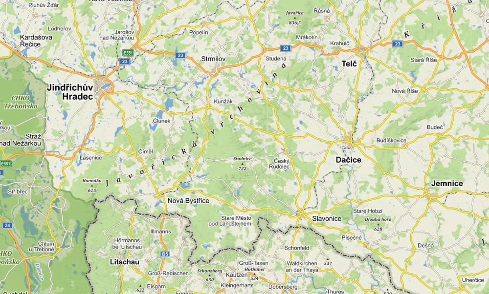 Už cesta sem, ať pojedete odkudkoliv, bude zážitkem. Skalní vyznavače brázdění se Islandem, Skandinávií nebo podobných destinací na rovinu upozorňuju, že tady zme vo ňákej ten levl níže, ale při skromnějších požadavcích a představách se vůbec nemusíte vobávat, že tu nic zajímavýho neprojedete a neuvidíte. Jen to bude trochu jiný než světově profláklý místa určený především pro géesa. Fakticky si tu vybere každej rozumnej člověk, každý kubatury a klasy. Území se nachází v elipse ohraničené Jemnicí, Telčí, Jindřichovým Hradcem a Chlumem u Třeboně. To nejpodstatnější se pak odehrává v okolí Slavonic, Dačic, Kunžaku, Nové Bystřice a kolem Landštejna.