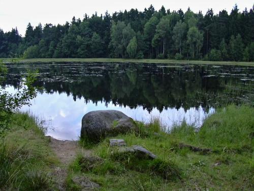 Landštejn: rybník Pstruhovec, rašelinitá voda