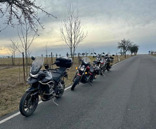 Posledních 10 km z Nehvizd už začalo býti trochu kosa, ale dojezd v pohodě, bez ztráty citlivosti nebo komfortu. Díky této výbavě od Jitky mohu jezdit téměř celoročně (mimo sníh, mráz, led a solanku na silnici). Zatím nebylo třeba vyhřívaných heftů či sezení (i když jsou určitě příjemný). Z dřívější doby mám v zásobě reflexní pláštěnku a nepromok návleky na kalhoty. K jízdnímu komfortu přispívá i ochrana, kterou poskytuje kapotáž a klasický štít (Tiger 850 Sport).