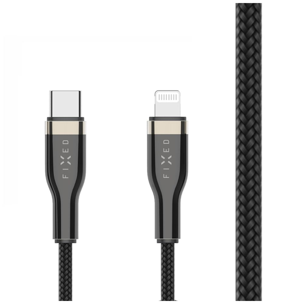 FIXED - Nabíjecí a datový opletený kabel FIXED s konektory USB-C/Lightning a podporou PD, 1.2m, MFI, černý