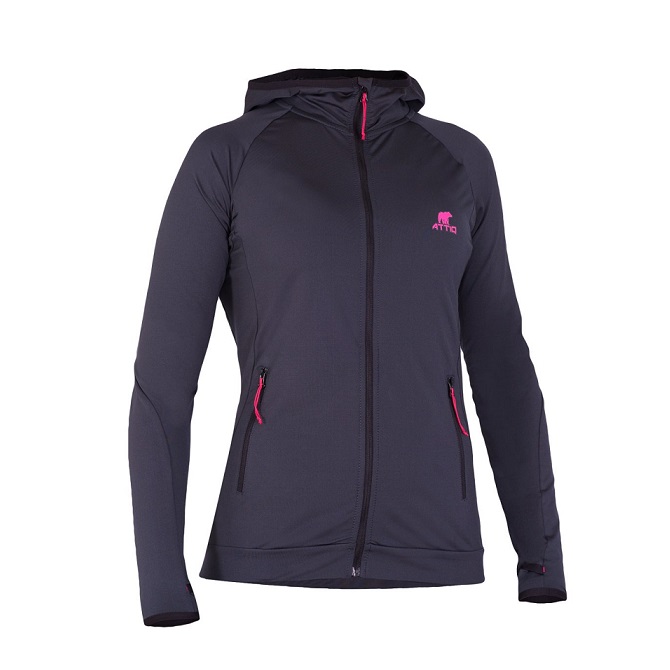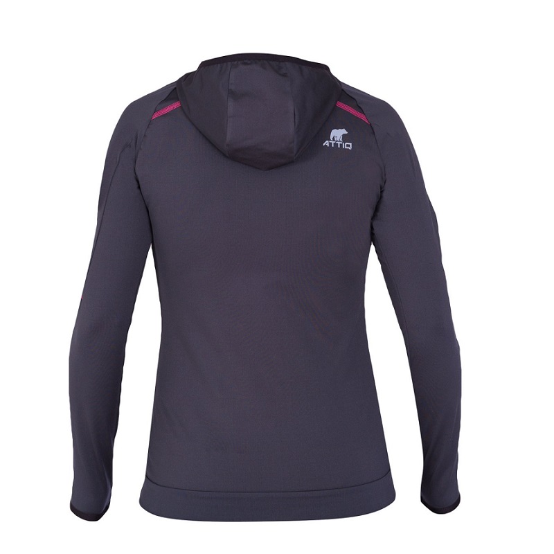 Dámská mikina s kapucí je vyrobena z pružného termoaktivního polyesteru. Rychleschnoucí a prodyšná vlákna v technologii Run Tech zaručují tepelný komfort a pocit svěžesti a sucha. Pružný, příjemný materiál zaručuje volnost pohybu a dokonalé přizpůsobení tělu. Základem mikiny je dvouvrstvý polyester, který poskytuje vysoký tepelný komfort a díky mikrofleece materiálu, který je uvnitř mikiny, dokonale izoluje a udržuje teplo v chladných dnech. Termoaktivní vlákna neustále přenášejí vlhkost ven. Mikina má anatomický střih, vysoký límec kompatibilní s kapucí, otvory pro palce, dlouhý zip, 2 kapsy na zip a reflexní loga zajišťují viditelnost ve tmě.