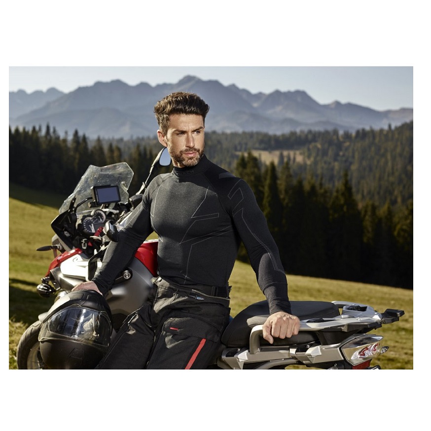 Pánské tričko s dlouhým rukávem z kolekce MOTORCYCLE je speciálně navrženo pro všechny, kteří se věnují motoristickým sportům. Oblečení je vyráběno z bezešvého, dvouvrstvého úpletu, který chrání před přehřátím i chladem. Vnitřní vrstva odvádí vlhkost ven, zatímco vnější vrstva zajišťuje tepelnou izolaci a zabraňuje pronikání chladného vzduchu. Speciální zóny, použité v oblastech zvýšeného pocení, zajišťují dobrou ventilaci. ploché švy zajišťují vysoký komfort nošení a chrání kůži před oděry. Kolekce MOTORCYCLE je vhodná na nošení během celé motocyklové sezóny.