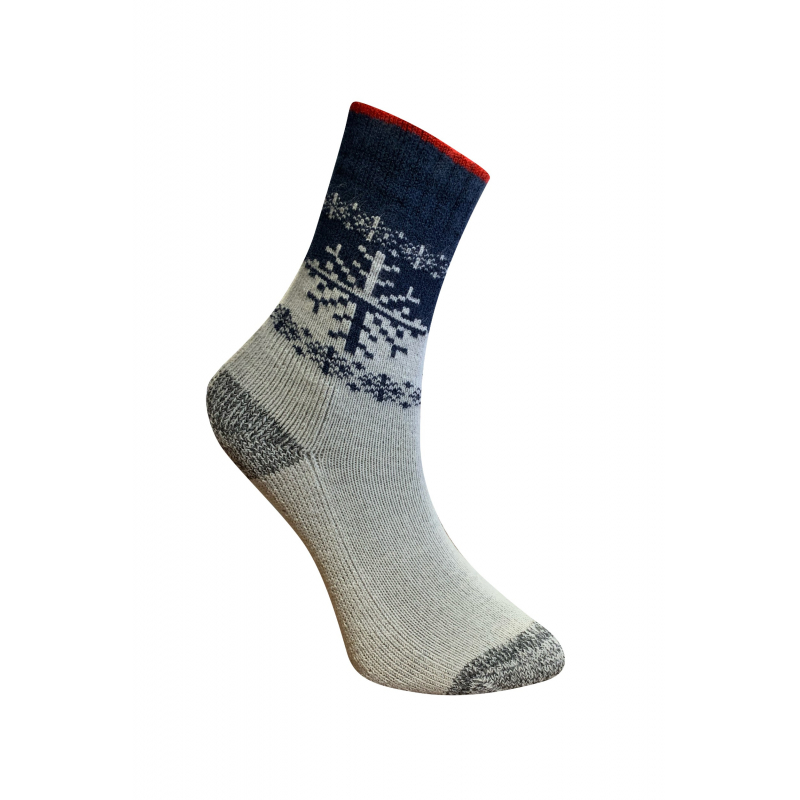 Ponožky se zesíleným materiálem na patě a špičce jsou vyrobeny s podílem přírodní ovčí vlny merino ve směsi s jinými vlákny, které zabraňují žmolkování, plstnatosti a zvyšují termoizolaci. Klasická délka lýtka je zakončena horním lemem, který je dostatečně široký, aby nohu nestahoval a ponožky byly pohodlné i na celodenní nošení.