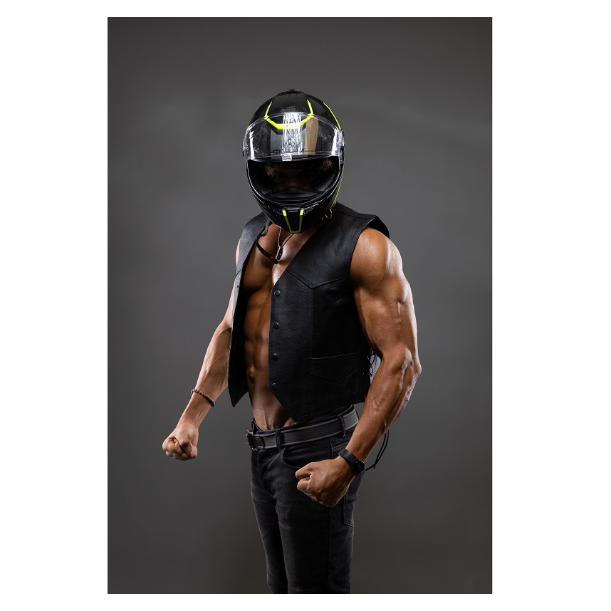 V jednoduchosti je krása: motocyklová kožená vesta. Vychutnejte si dotek 1,2 mm silné hovězí kůže v prvotřídní kvalitě. Komfortní podšívka vyrobená z polyesteru. A ohromte své okolí - třeba stylovým zapínáním pomocí kovových cvoků.