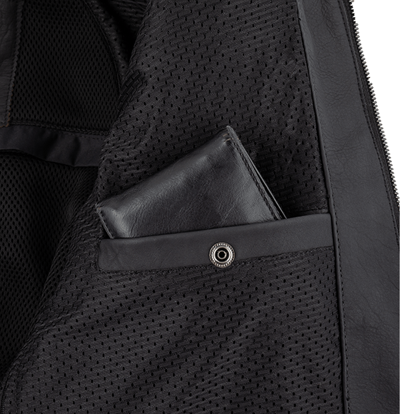 - pružné kožené části na pažích a zádech pro vytvoření prostoru pro případné nafouknutí airbagu