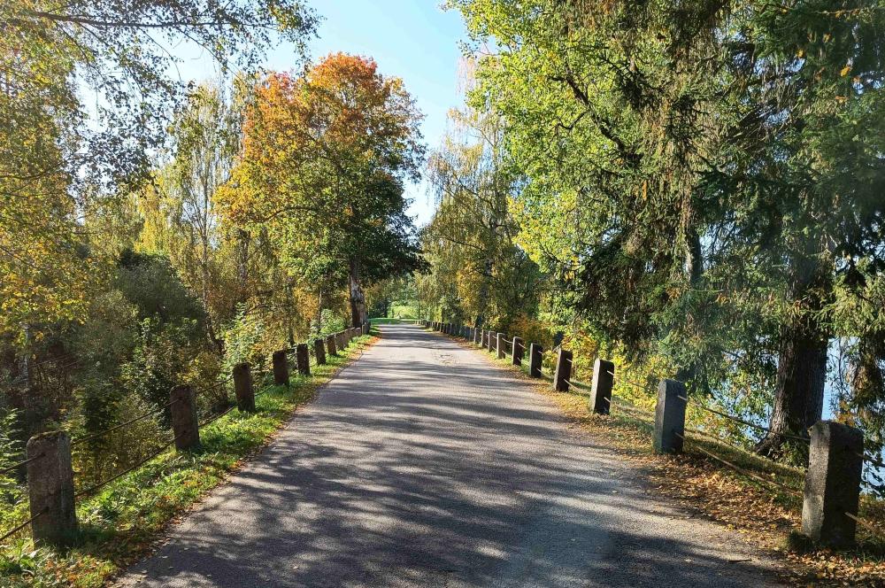 Z Olšiny jsme se vrátili kousek do kopce a odbočili jsme vl směr Hůrka. Za chvíli se otevře pohled na celý okolní kraj lemovaný prstencem hor a lesů. Pod sebou uvidíte hladinu „malého Lipna“ a pak už to vopravdický Lipno v celý svý mohutnosti a velkoleposti. Projedete po dělící hrázi a v Černé se dejte vp. směr Radslav. Zde je na konci výběžku písečná pláž s hezkým koupáním. Vrátíme se do Černé a jedeme vp směr Milná. Pokud na asfaltu nebude vrstva sedřený kúry, tak si užijte rovinek, vlnek a zatáček, fak to stojí za to. Ve Frymburku vl směr Světlík a opojení vaším strojem může pokračovat. Bacha jen, nepřežeňte to, bo mnohý zatáčky utahujou a nejni za ně vidět! Když nechytnete sněm šneků, tak si tenhle úsek parádně užijete. Před Světlíkem vl. uvidíte obrovský těžební prostor rašeliny. Projedeme vrchní částí Větřní a po lokální zkratce pojedeme směr Kájov. Když překonáme sedlo a budeme se spouštět do Kájova dole v údolí, tak my všicí milovnící železného oře odbočíme vp a po zbytcích malé silničky se dojedem podívat na opomíjený unikát české železniční sítě: vlečku Kájov – Větřní, konkrétně na předávkovou stanici „Úvrať“. Vše tu zaniká a zarůstá, ale přeci jen lze stále vnímat génia loci tohoto skvostu. Jedná se o trať, kde byl naměřen největší sklon na železniční síti v ČR, a to prosím bez ozubnice! Jó to muselo bejt, dyš tu duněly „bardotky“ s pár loženejma vozama, páč norma víc neumožnila. Bude vám krvácet železný srce, dyš si uvědomíte, kam se to dostalo, ale překonejte to a projděte se po kolejišti úvratě, a když to náletové dřeviny dovolí, tak i po kouscích tratě s oním vražedným sklonem (z úvratě se dá lesní cestou dojet až k prvnímu přejezdu nad Němčeský potok). Za pár let to asi zmizí navždy. Vraťte se na asfaltku a vp dolů směr Kájov a dál až na P pod krumlovským zámkem.