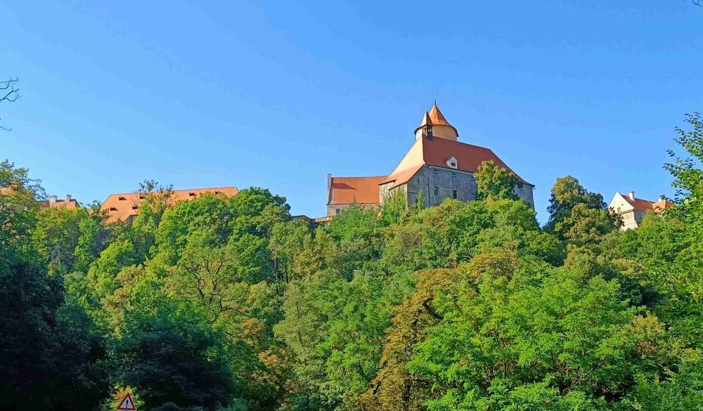 Po dopolední práci odjezd směr Bystrc, kolem Pryglu a krásnou silnicí bukovými lesy pod majestátný hrad Veveří. Je to nádhera zastavit pod ním, zvednout hlavu a užívat si tu mohutnost. Přes Býtíšku kolem Tišnova a pak chvilka moravské gotiky – Porta coeli. To je něco jako klášterní město, vzniklé téměř před 800 lety. A maj tu taky svůj pivovar, tak jsem si koupil petku na košt. Dál Vysočinou až k dalšímu pivovaru, tentokrát Balonovému v Radešíně. I tady jsem si koupil jednu vod cesty. Skrz srdce Vysočiny, kolem Santiniho Zelené hory přes Krucemburk až do Chrudimi, zdejší rychlodráhou (obchvatem a spojkou) do Pardubic a za nimi sjezd na Stýblovou, ale nejet do vsi, nýbrž na druhou stranu, přejet hradeckou trať a za pár minut bude vlevo plácek na P. Za kouskem lesa je jezero s názvem Franťák. Je to bývalá pískovna s možností stále dobrýho koupání. Voda už sice nejni ten tyrkys jako bejvala, rybářů je víc než dost, ale mimo prázdniny a víkend tu stále lze nalézt fleka na dobrá koupání. Dyš dojdete (nebo při málo lidech a dětech dojedete) po pěšině cca vo 200 m po břehu, tak se dostanete do úseku několika malinkých privátních plážiček; třeba budete mít štěstí a trefíte na volnou. Tak děte brát koupel. No a pak už jen přesun na D11 a betonovou nudou dom.