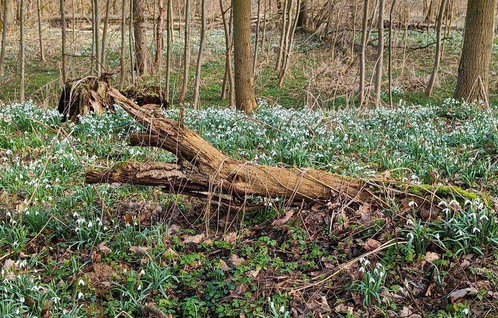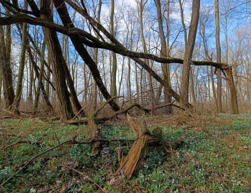 Pro pražské kolegy krátký přejezd po D8, obchvatem kolem Roudnice, před pískovnou (kde je v létě parádní koupání) do Dobříně. Zde je Dobříňský háj, zbytek lužního lesa s mohutnými exempláři dubů, javorů, jilmů a akátů. V předjaří je zde možné kochat se kobercem tisíců bílých květů sněženek, později pak dýmnivek a jejých kvítků. Zaparkujete stroj kousek před "rezervací" a máte před sebou klidnou...