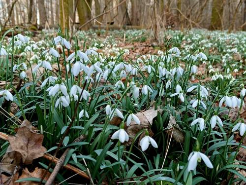Pro pražské kolegy krátký přejezd po D8, obchvatem kolem Roudnice, před pískovnou (kde je v létě parádní koupání) do Dobříně. Zde je Dobříňský háj, zbytek lužního lesa s mohutnými exempláři dubů, javorů, jilmů a akátů. V předjaří je zde možné kochat se kobercem tisíců bílých květů sněženek, později pak dýmnivek a jejých kvítků. Zaparkujete stroj kousek před "rezervací" a máte před sebou klidnou procházku v délce necelého kilometru. Jakožto správní machří však sněženky netrhejte, jsou "hájené", jen se zplna hrdla i oka kochejte.