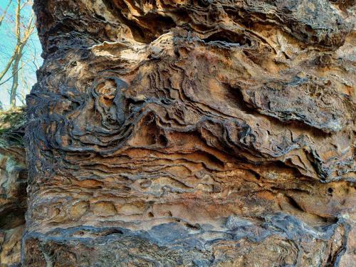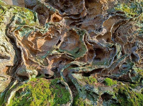 Pokračujete přes Roudnici, kterou si můžete projít, ale pak zejména přejeďte Labe a kousek za ním odbočte vp. Zde začíná kouzelný úsek zatáček a většinou dobrého asfaltu, který pokračuje až do Dubé. Za Dubou vjíždíte do kokořínských dolů. Když po 259 dojedete na křižovatku na horizontu, tak dál jedete vp. Ovšem jste-li hladní a nestačí vám vesnická hospůdka za 5´, neodbočujte, jeďte rovně dolů a cca po 6 km dojedete do Ráje, kde nad křižovatkou narazíte na stejnojmenou restauraci s dobrým jídlem. Pak se vraťte zpět a odbočte na horizuntu vl., prostě dle původního plánu na Střezivojovice. Zde je vp. od silnice ona hospůdka Bouda. Vy, kteří nepotřebujete "Ráj", se zkuste občerstvit tady. Buď stroj nechte zde a jděte kousek pěšky nebo po hlavní, kousek za hospůdkou odbočte vl. do jednosměrky (ano opravdu, i na Kokořínsku jsou jednosměrky). Někde kolem čp. 21 nechte stroj a jděte rovně dolů na louku, kterou přejděte a stoupejte kousek na okraji lesa. Pak vystoupejte posledních 50 m lesem a jste u skalního unikátu. Špičák je nevelká pískovcová skála, ovšem protkaná "železem", které vytváří na povrchu podivuhodné útvary v podobě ornamentů, tajuplného písma nebo obrazců podle fantazie každého. Obejděte si ten skvost, radujte se a pak se vraťte ke strojům. Dál dokončete jízdu jednosměrkou a znovu jeďte vl. skrz ves. Jedete památkovou rezervací, tak si vychutnejte krásu roubenek a pískovce. Když projedete další dvě "památkové" vsi, tak tou třetí je Kokořín. Když budete lačnit po další kráse, vohněte to vl. a dojeďte si prohlédnout hrad Kokořín. Nebo jeďte vp. směr Mělník a přes Liblice zpět do Polabí. V Konětopech nebo u Lhoty jsou dvě velké pískovny s možností koupání (pro mejnstrýmovou populaci tedy jen ve slunném létě). Cestou zpět pře Starou Boleslav si můžete pochutnat na zákuscích ke kávě u Terezky. No a pak už jen zpět směr Praha nebo jinam, domů.