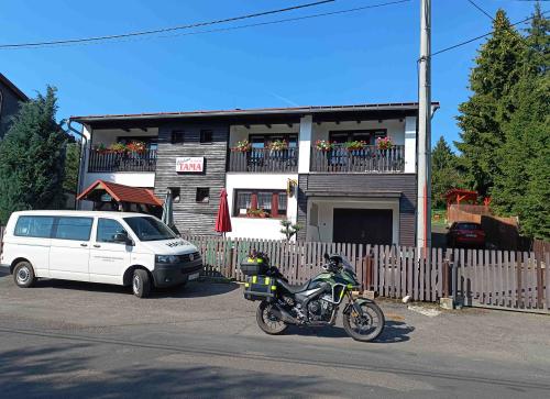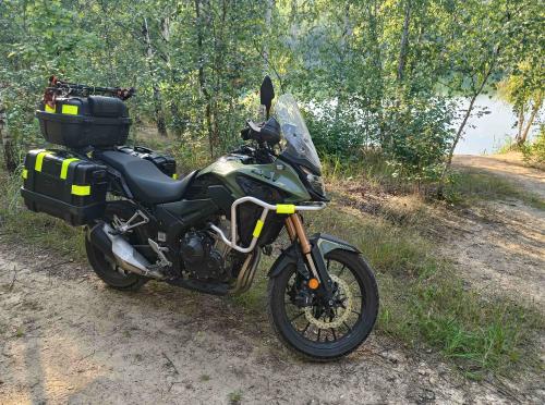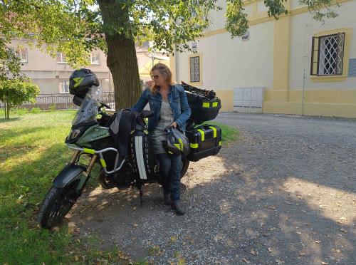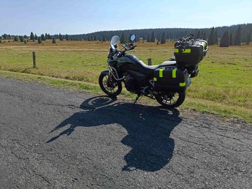 Ještě jeden dovětek: jako součást poděkování a opravdu důležitou součástí dobrý výbavy je i zprostředkování kontaktu s Markem, díky jehož výuce si totální začátečník jako já může užívat jízdu na moto, dokonce i ve dvou a s nabouchanejma kuframa. Marek přede mnou otevřel dveře, o kterých jsem ani netušil, že existujou = užívání si jízdy, větru, vůní, výhledů, možností bajku a pomalu narůstající schopnosti zvládat nejen přidávání plynu, ale i pohled, zatáčení, náklon, balanc, brzdění, uvolněnost a plynulost. Nezvládám to jak bych chtěl, ale du tímhle směrem. Díky Jitko a Marku. m+a